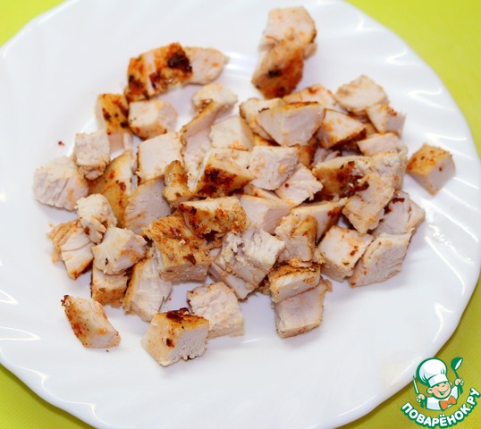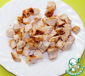 Куриное филе, в данном случае запеченная куриная грудка, кубиками.