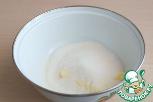 Растереть размягченное сливочное масло с сахаром до однородного состояния.