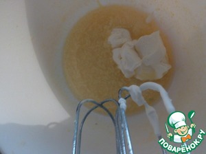 Потом ввести сметану и продолжать взбивать до получения однородной массы.
