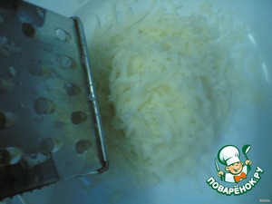 • Сыр моцарелла натереть на крупной терке.