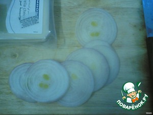 • Очистить лук и нарезать его тонкими кольцами.