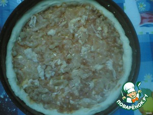 • Мелко нарезанное филе курицы равномерно выложить на тесто.