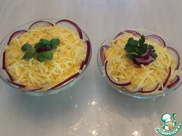 При желании добавить красный лук, нашинкованный мелкими полукольцами.