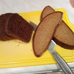 Берем литовский хлеб. В Литве безумное количество сортов хлеба и все до безобразия вкусные. Нам же нужен хлеб темный, на закваске, что называется "тяжелый". Вчера мне удалось обнаружить в беларусском магазине ))) 2 сорта литовского хлеба, которые и были незамедлительно приобретены