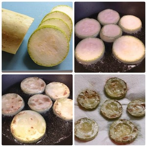 Кабачки нарезать кружочками. Посолить и обжарить на растительном масле с двух сторон до готовности.