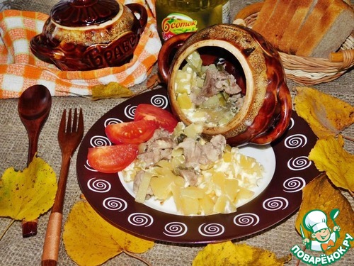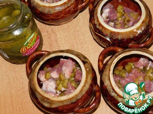 Рецепт «Жаркое с маринованными огурцами в горшочках»: