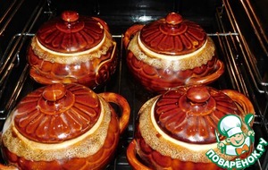 • Накрываем крышками и ставим в холодную духовку. Включаем 200С и готовим минут 50.
