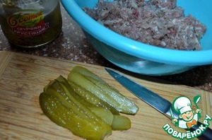 Огурцы нарезать мелкими полосками.
