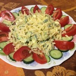 Перемешать яйца с огурцом. Солить и заправлять салат нужно перед подачей на стол, т. к. огурцы дают сок, если постоят в майонезе. -