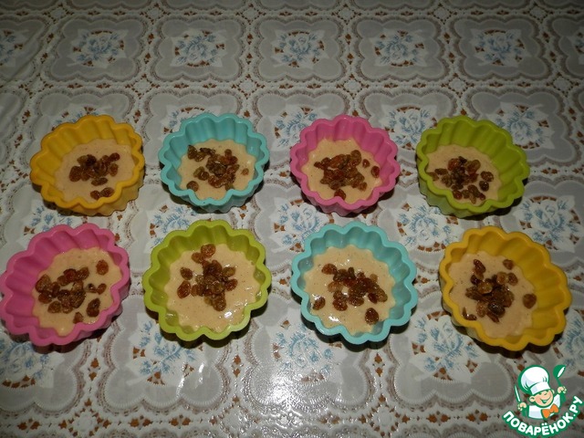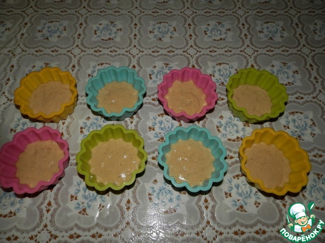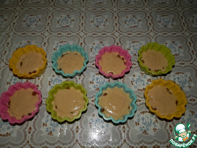 Формочки надо наполнять на 2/3 объёма. Тесто поднимается очень хорошо.