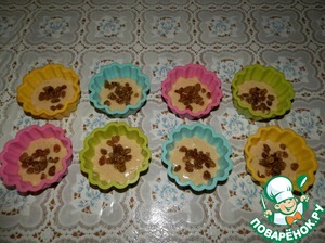 Разложить по смазанным формочкам часть теста (чуть побольше половины).