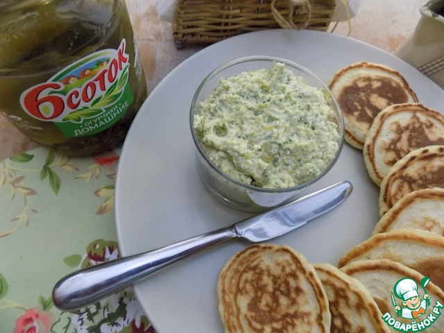 Пикантная сырная намазка с острым огурцом для овсяных оладий и не только!