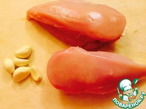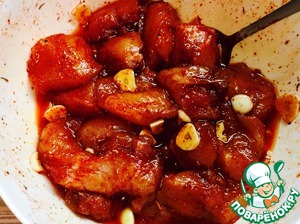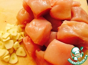 К куриному филе добавляем чеснок, соевый соус, паприку, перец, и имбирь