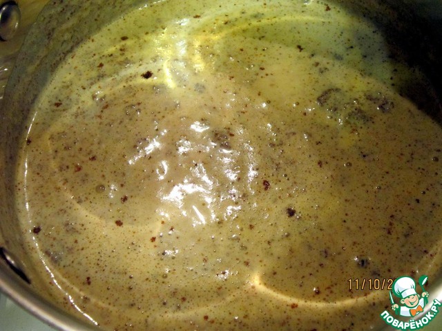 • Процеживаем чай и добавляем его в сливки, добавляем мускатный орех. Доводим до кипения и выключаем. Настаиваем 5 минут.