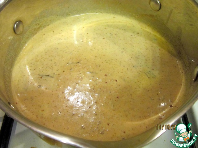 • Выливаем сливки в сотейник, высыпаем специи и сахар и на медленном огне кипятим 5 минут. Без крышки.
