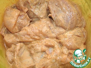 Курицу залить соусом-маринадом Терияки от ТМ Киккоман. -