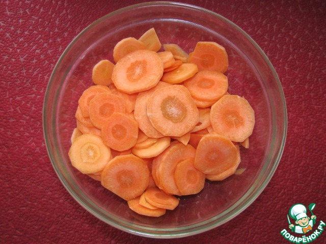 Морковь помыть, почистить. Нарезать крупными кружочками.
