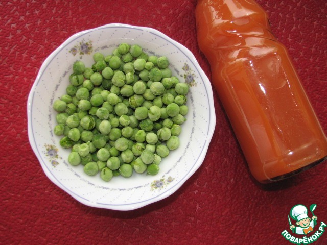 Также нам понадобится зеленый горошек. Я взяла замороженный.