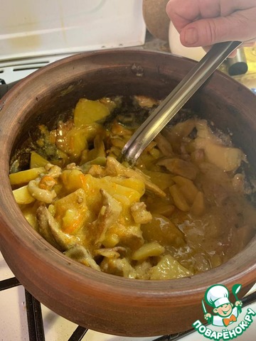 Накройте сотейник крышкой и поместите в нагретую до 180 градусов духовку. Готовьте примерно 1 - 1,5 часа.