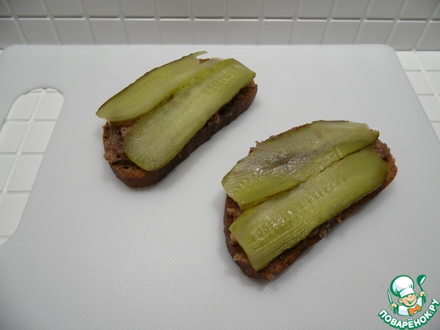 Рецепт «Бутерброд с тушенкой и огурцами»: