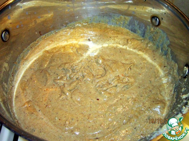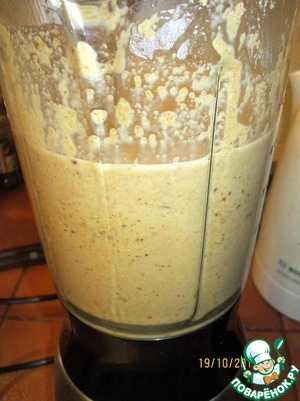 • Размокший хлеб взбиваем в блендере до однородной массы густой сметаны. При необходимости добавляем горячую воду.