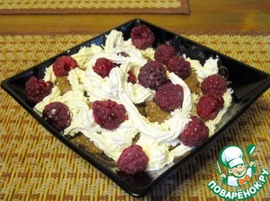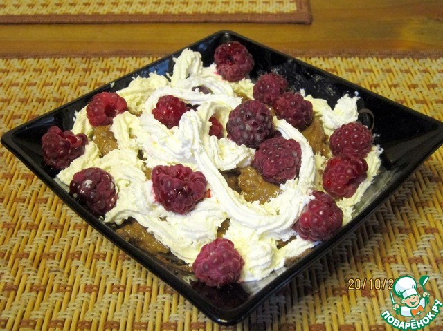 • Хорошо остужаем суп в холодильнике. Украшаем взбитыми сливками и малиной. Она ещё у нас плодоносит. Наслаждайтесь.