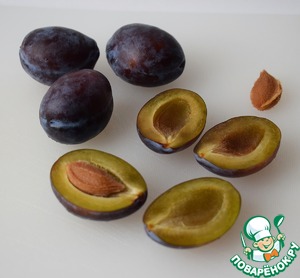 Сливы вымыть, разрезать, удалить косточку. Можно оставить половинки или разрезать на четвертинки.