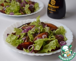 Рецепт «Салат с печенью и карамелизированными сливами»: