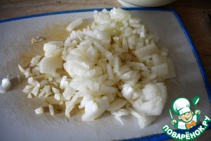 Лук мелко нарезать и обжарить на растительном цвете до золотистого цвета.