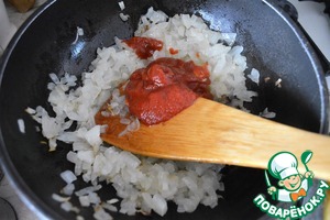 Добавить к луку томатную пасту - обжарить еще пару минут.