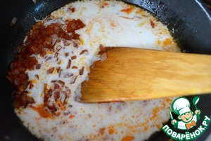 Заливаем стакан кефира, перемешиваем и доводим до кипения - соус готов.