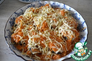 Посыпаем натертым сыром и отправляем в духовку на 35-40 минут на 180 градусов