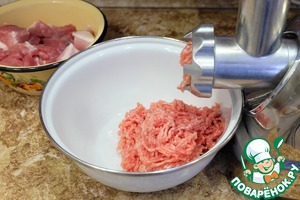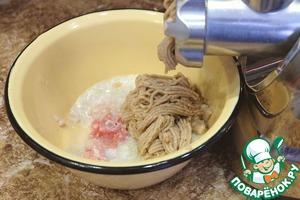 • Подготовленное мясо следует пропустить через среднюю или мелкую решетку, лучше всего, если это будет мелкая решетка. Фарш, пропущенный через мелкую решетку, будет иметь более мелкую, гомогенную структуру.