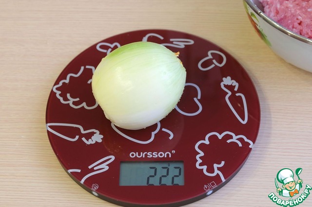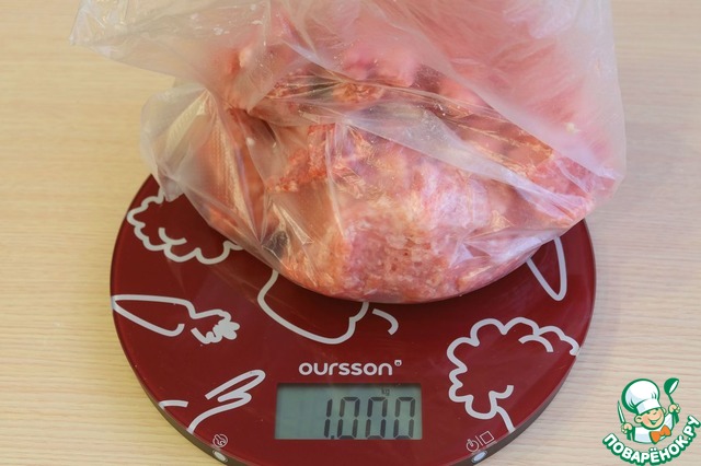 • В рецепте мы будем работать с фаршем, вес которого 1 кг.