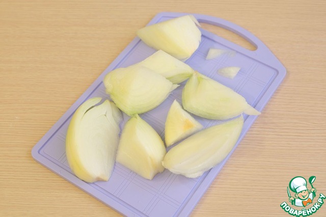 • Для приготовления фарша для котлет нам потребуется репчатый лук, он придаст сочность и вкус нашим котлетам. Для приготовленного фарша нам потребуется 220-250 гр репчатого лука.