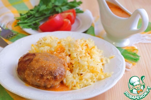 • На гарнир можно подать: картофельное пюре, картофель фри, отварной картофель, рис, гречневую и гороховую каши, тушеные овощи. Готовое блюдо полить соусом.