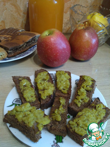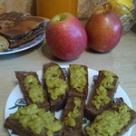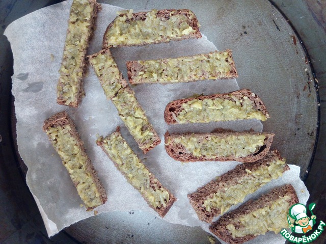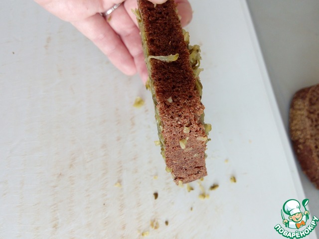 Смазываем кусочек хлеба с 2 сторон огуречной смесью.