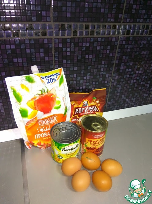 - Фасоль консервированная — 1 бан.