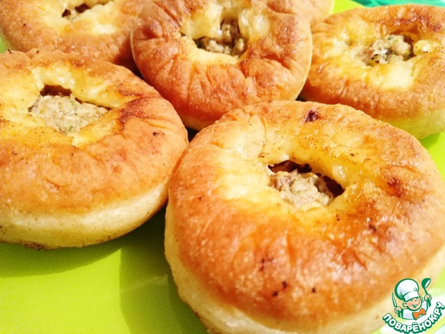 Поднимая края, формируем беляши и немного расплющиваем. Дырочку стараемся сделать размером около 2 сантиметров, потом она немного разойдется.