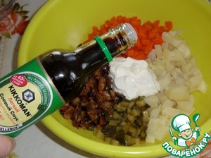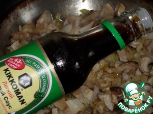 Добавляем 2 ст. л. соевого соуса. Я использую соевый соус "Легкий" ТМ "Kikkoman".
