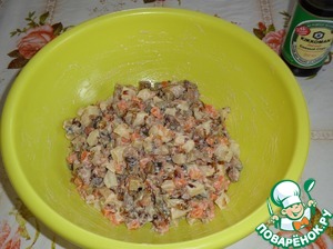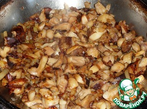 Обжариваем грибы с луком еще 5-7 минут. Затем остужаем массу.