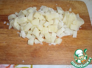 Кубиком нарезаем картофель.