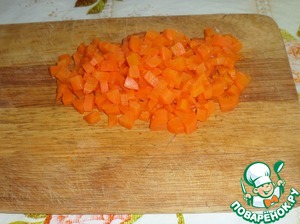 Кубиком нарезаем морковь.