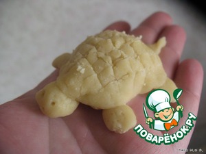 Можно налепить любых фигурок, только чтобы у них сильно торчащих деталей не было - в духовке отвалятся. Вот, к примеру, черепашка.