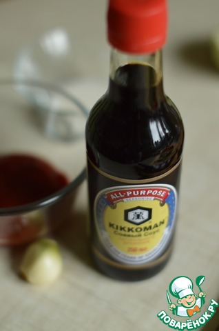 Чеснок почистить, приготовить сахар, томатную пасту и соевый соус Kikkoman.
