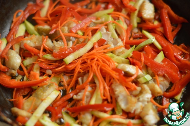 Очень быстрое и вкусное блюдо. Причем рыбу смело можно заменять на любое мясо, и овощи тоже могут быть самые разнообразные.