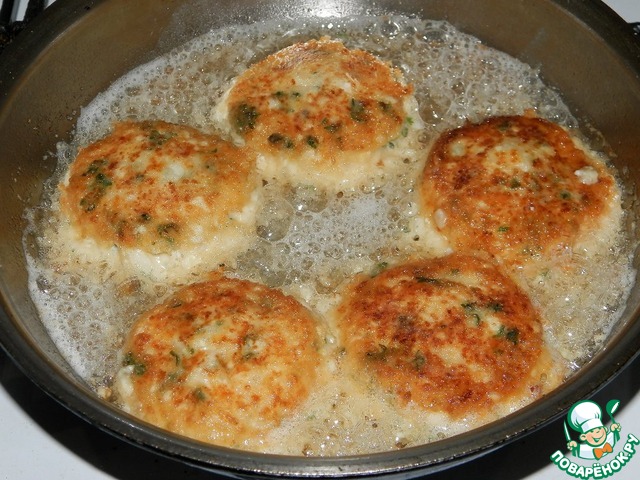 • Влажными руками сформировать биточки, обвалять их в муке и обжарить до золотистой корочки, на разогретой сковороде в растительном масле. Котлетки получаются очень нежные, поэтому переворачивайте их осторожно.