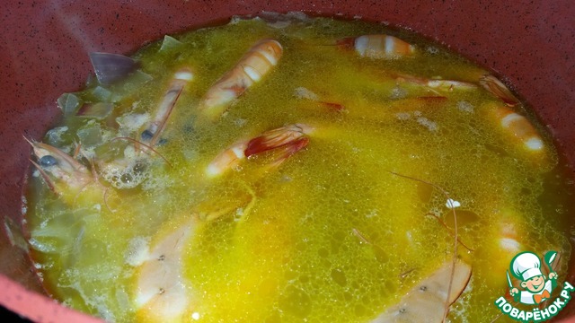 меня осенило, как сделать это блюдо более праздничным. просто очистить уже свареные крветки, оставив только хвостики