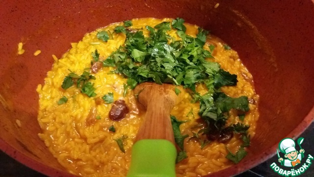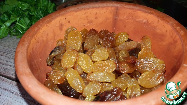 • За 5 мин до готовности добавляем изюм и петрушку.