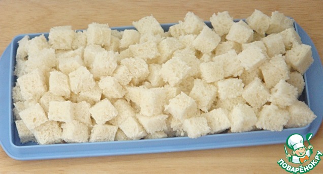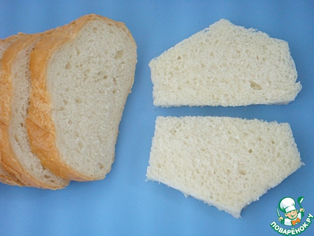 Нарезать хлеб ломтиками толщиной 1,5 см.
